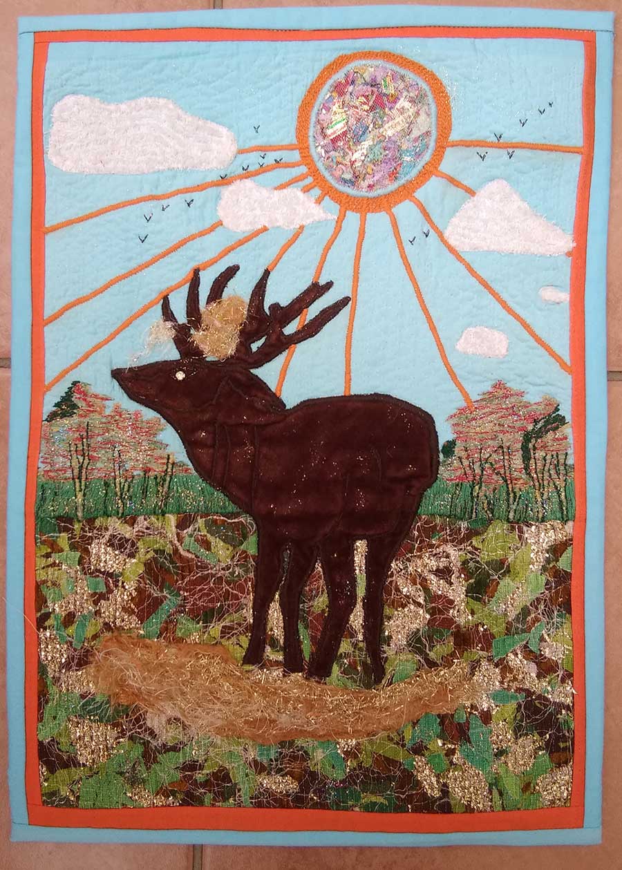 My picture uses techniques of English Paper Piecing, as developed by myself, including the use of reversed pieces and seams, and applique.